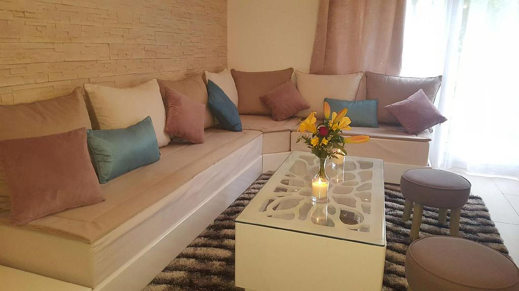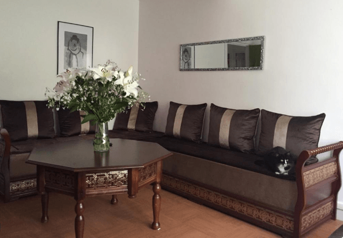 Cuisine équipée, accessoires et ustensiles de cuisine.