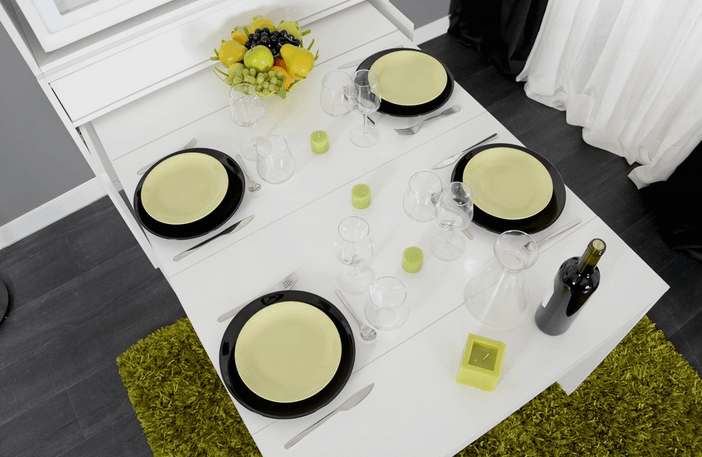 Cuisine équipée, accessoires et ustensiles de cuisine.